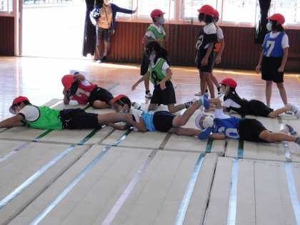 後半戦はスーパー守護湯タイムです。運動の場を各自が選び、修行します。こんな動きの工夫もできました。