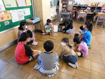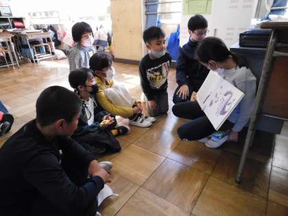 どの班の子も、興味を持ってお兄さんお姉さんの読み聞かせを聞いています。