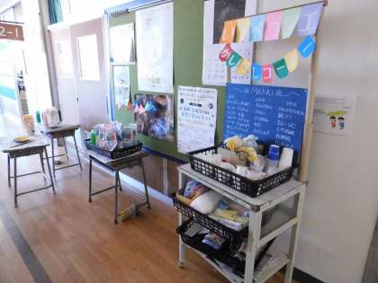 絵の具など、みんなで使うものは図工室前に準備されていました。