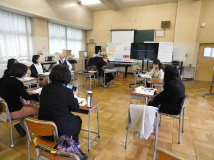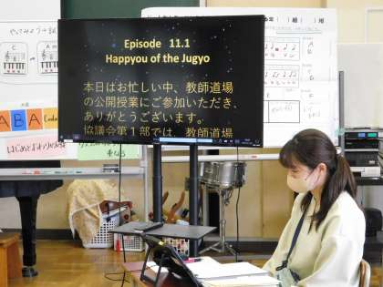 授業終了後は参加された先生方で、協議会を行いました。まずは教師道場の先生方が作った道場のプレゼンテーションを流しました。
