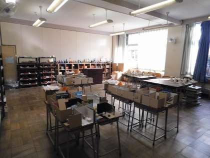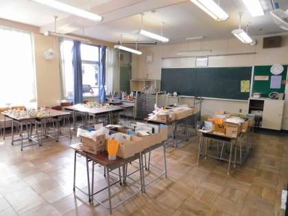 第2図工室には、展示を待つ作品が並べられています。もうすぐ作品展です。
