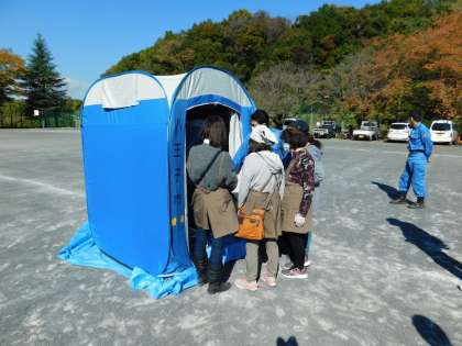 こちらは震災時に使う簡易トイレです。すごいしっかりとしていました。各学校の防災倉庫にあります。