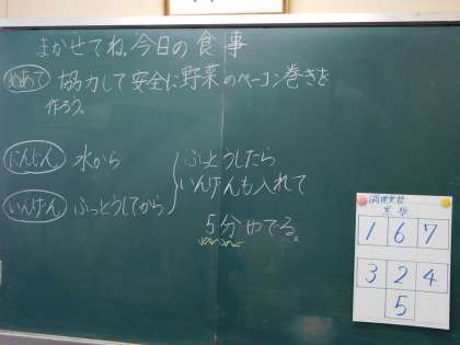 今回の調理実習は「まかせてね。今日の食事」が単元名です。