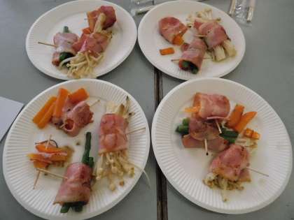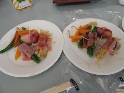 おいしそうなベーコン巻きの完成です。終了後に子どもたちが完成品を持ってきてくれました。おいしかったです。ありがとうね。