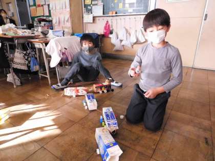 11月10日、2年生が生活科で「うごくうごく わたしのおもちゃ」の発表をしました。