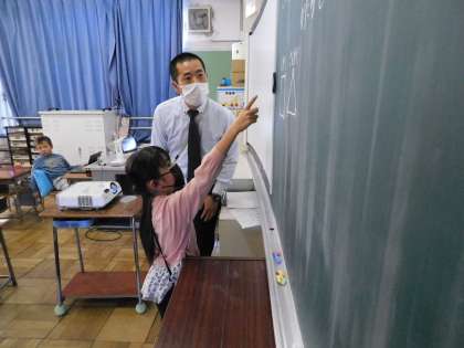1組は算数の学習中でした。三角形や四角形の勉強です。