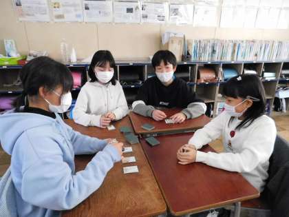 4時間目ということもあり、急遽、百人一首が始まりました。担任不在でもしっかりしている2組さんです。