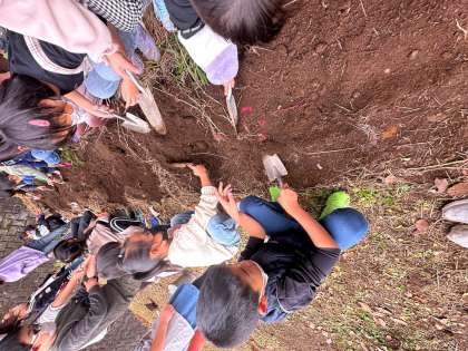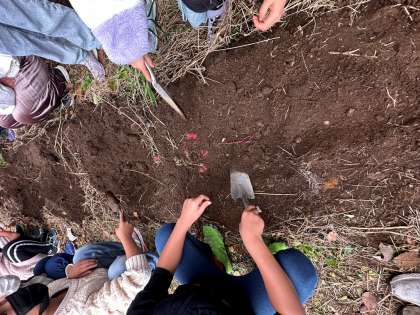 芋ほり中です。