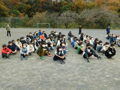 12月1日、久しぶりに校庭で全校朝会を行いました。