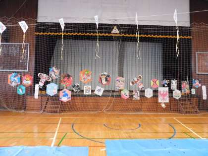 体育館には、様々な凧が飾られました。