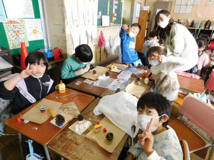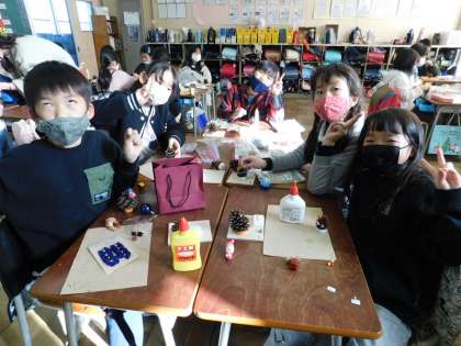 各自が持ち寄った材料や学校にある材料を使って、オリジナルツリーを作ります。