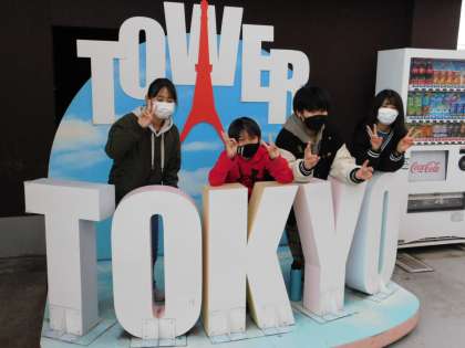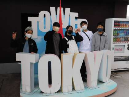 階段を下りてきたところに、フォトスポットがありました。班で写真を撮りました。