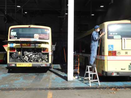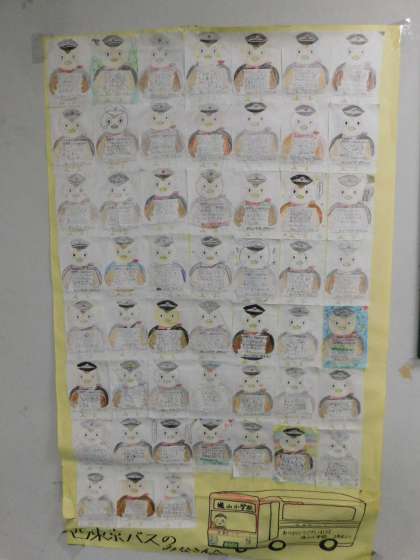 トイレ休憩の合間に、整備工場も見学。事務所入り口には、昨年の2年生が書いたお礼の模造紙が貼られていました。ありがとうございます。