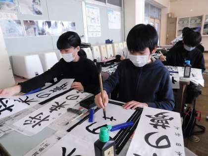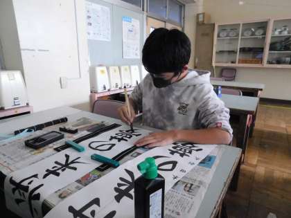 6年生はすでに、本番と同じ書初め用紙に書いていました。みんな上手です。