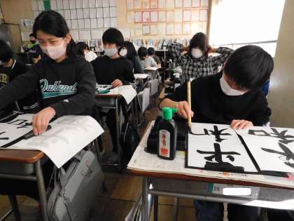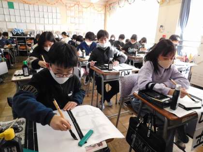 5年2組でも書き初めの練習をしていました。