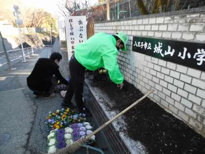 この日も霜柱ができる寒い日でしたが、花の植え替えに来てくださっていました。