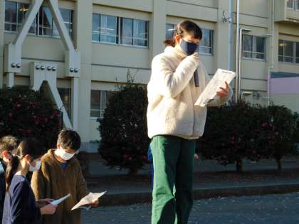 12月15日(木)、色別班による「大繩跳び大会」が行われました。6年生の大縄跳び大会実行委員の子たちが進行してくれました。