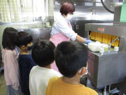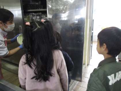 お皿を乾かすための熱風消毒保管庫の中も見せてもらいました。