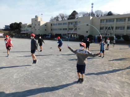 5時間目は6年生が3クラスとも体育でした。2組は前半、縄跳びをしていました。さすが6年生、上手な子が大勢います。