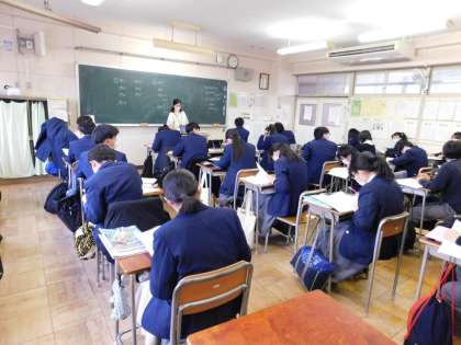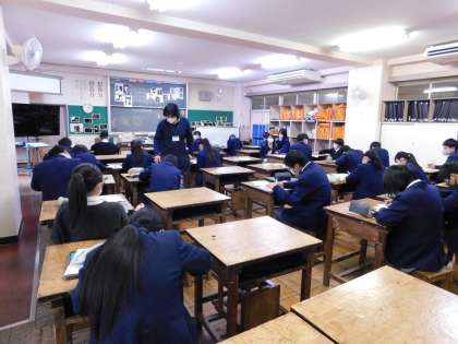 2月8日(水)、城山小の先生方が城山中学校を訪問し、授業参観と来年度に向けた話し合いをしました。