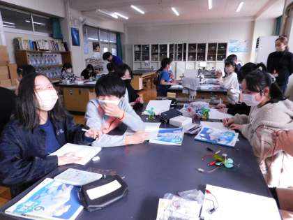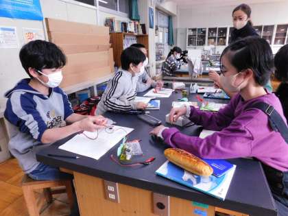 6年1組は理科室で実験をしていました。