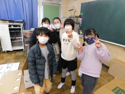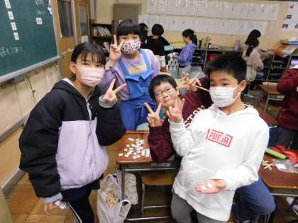 4年2組にお邪魔しました。金曜日の子どもまつりに向けて、準備をしていました。