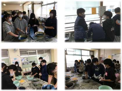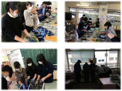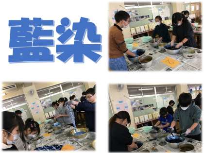 布の折り方をネットで調べたりしながら、藍染をしました。