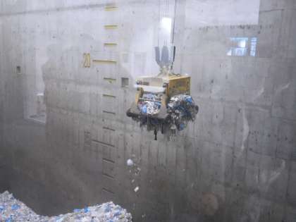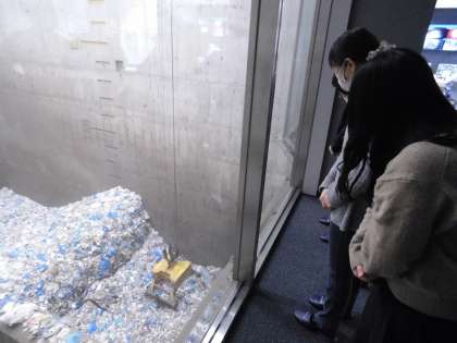 ごみピットも見学しました。高い位置からごみを落とし、袋を破ったり、水分を飛ばしたりします。