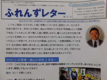 2年生がお店見学させていただいた読売新聞販売所の所長さんが写真のような「ふれんずレター」に子どもたちの様子を載せてくださいました。地域に配布されているようです。ありがとうございました。