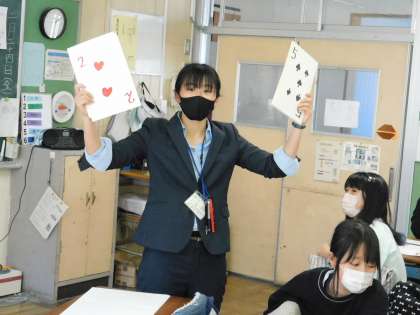 6年2組では「正・負の数の計算」について、ゲーム形式で楽しく授業をしてくれました。