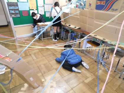 スズランテープで張ったレーザー光線をかいくぐって進むようです。
