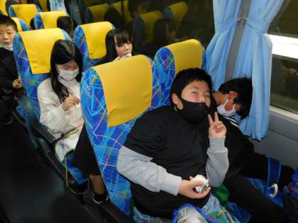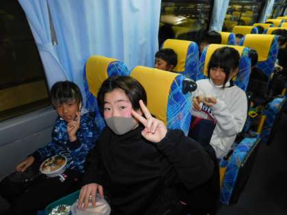時間の都合で、バス移動中に車内でお弁当を食べました。