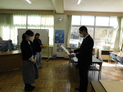 まずは永年、図書ボランティアとしてお力添えいただいた2名の方を表彰いたしました。