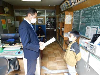 続いて、児童表彰です。「ティボール(団体)」で教育委員会表彰を受けた2年生です。