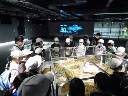 ビデオ視聴が終わると、見学経路に従って、館内を見学します。館内は見学を意識した作りになっており、タッチパネル式の掲示物など、様々な工夫がされていました。
