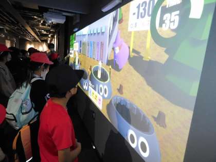 その後、発電タービンを見たり、その他の展示を見たりして、最後はお楽しみのタッチパネルによるゴミ分別ゲームに挑戦しました。