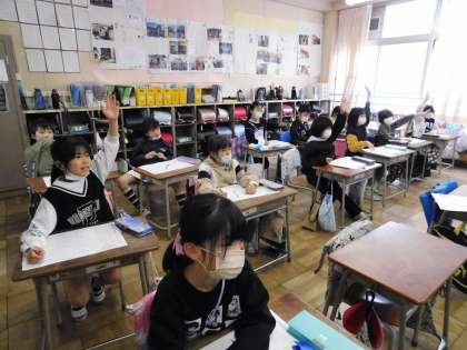 2年1組は算数の授業でした。復帰訓練中の先生が教えてくれていました。子どもたちもとtも楽しそうに学習していました。
