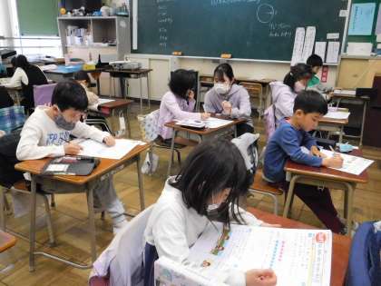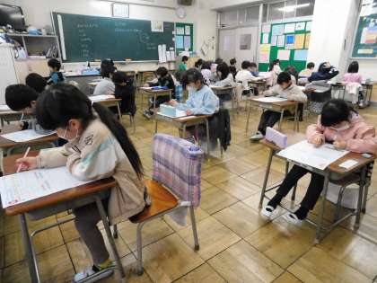 算数のテストをしていました。みんな静かに一生懸命取り組んでいました。
