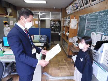 もう一人は、「全国硬筆コンクール」で全国公立小学校長会長賞を受賞した3年生です。