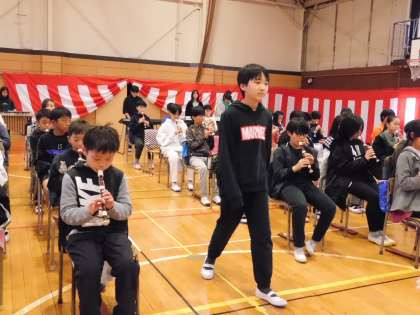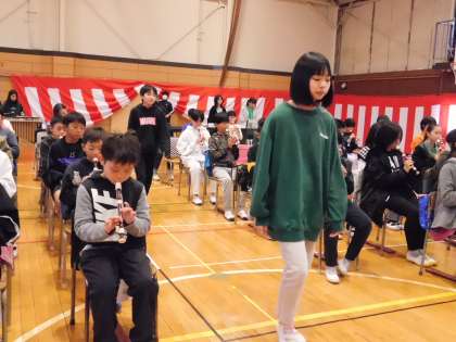 3組の入場です。5年生が「威風堂々」を合奏してくれる中を入場しました。
