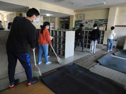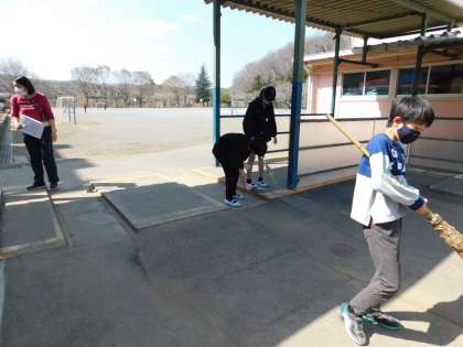 東昇降口や体育館外もきれいに掃除しています。