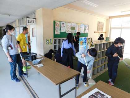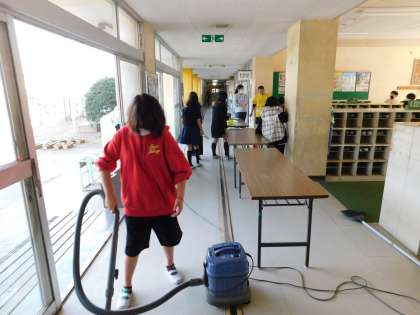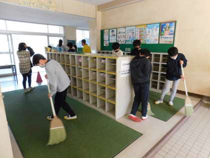受付場所となる中央昇降口もきれいにしています。