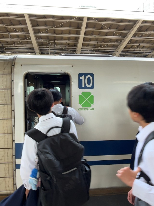 新幹線は座席配置の都合で、ひと班だけグリーン車です。定刻出発しました