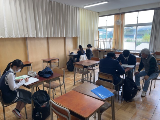 進路室を控室にしていますが、順番を待つ間はそれぞれ自習に臨んでいます。さすが、3年生は意識が高いです。