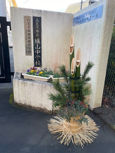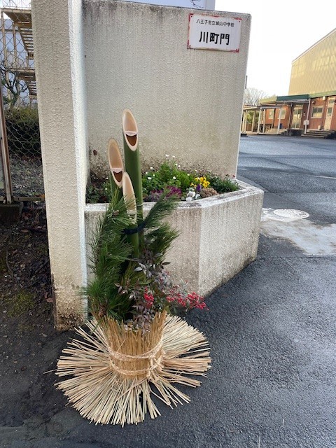 川町門には、生徒と作った門松が飾られています。