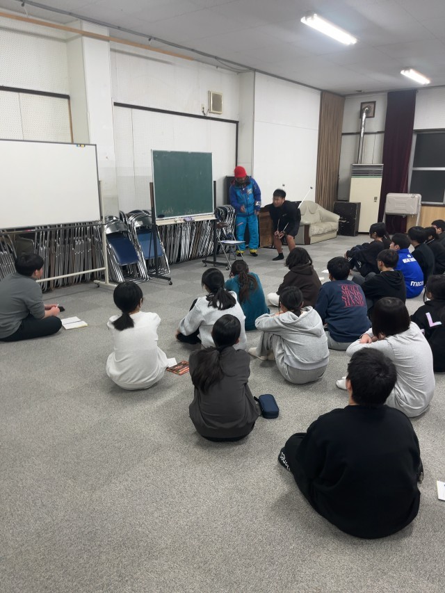 夕食後、スキースクールの校長先生に来ていただいて講習会を開きました