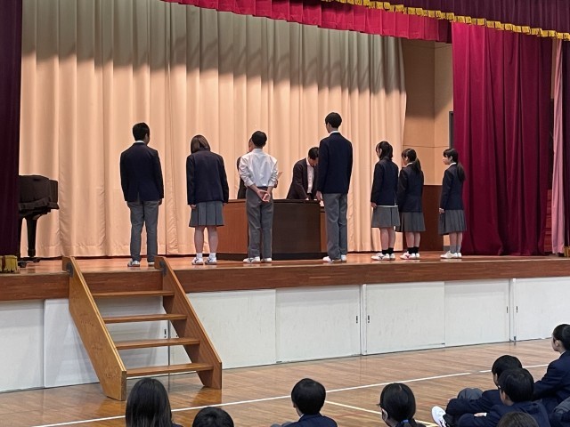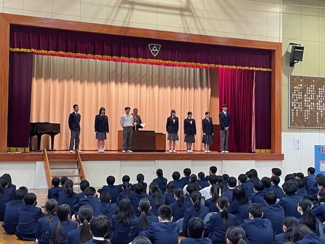 生徒会朝礼(認証式) 公開日 2026/04/27 更新日 2026/04/27 お知らせ 4月27日(月)の朝に認証式を行いました。令和8年度の生徒会専門委員長が、校長先生から認証状を受け取りました。前期の生徒会活動が本格的に始まります。 いいね(0) 城山中学校より