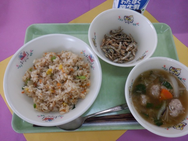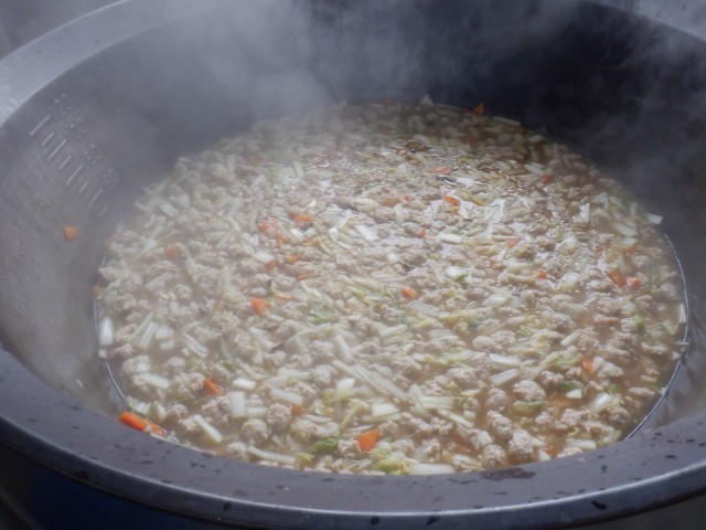 *肉団子スープを作っています。最後にチンゲン菜の葉を入れたら完成です。・・・写真2枚目