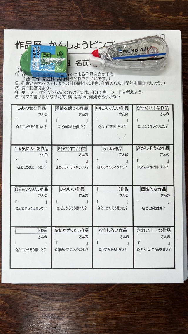 2番目の写真は、課題である「鑑賞ビンゴ」です。