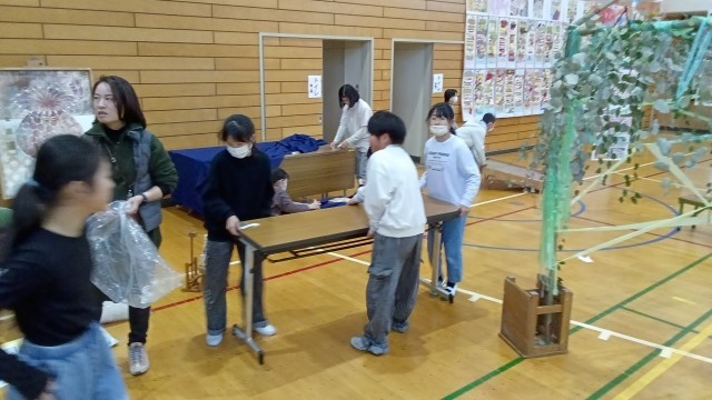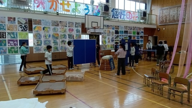 今日は、6時間目に5・6年生が力を合わせ、作品展の片付けを行いました。